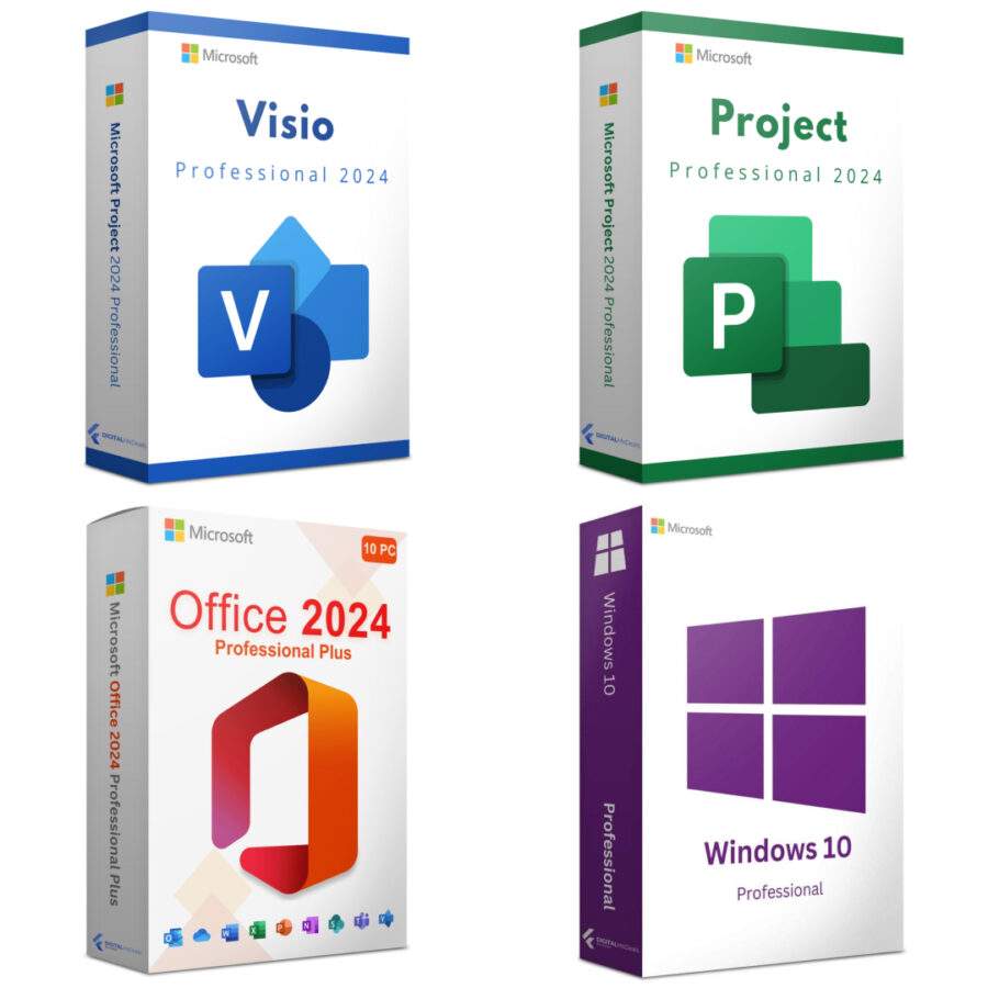 Microsoft Windows 10 Pro + Office 2024 Professional Plus + Visio 2024 Pro + Project 2024 Pro – Licenze a vita (1 PC)