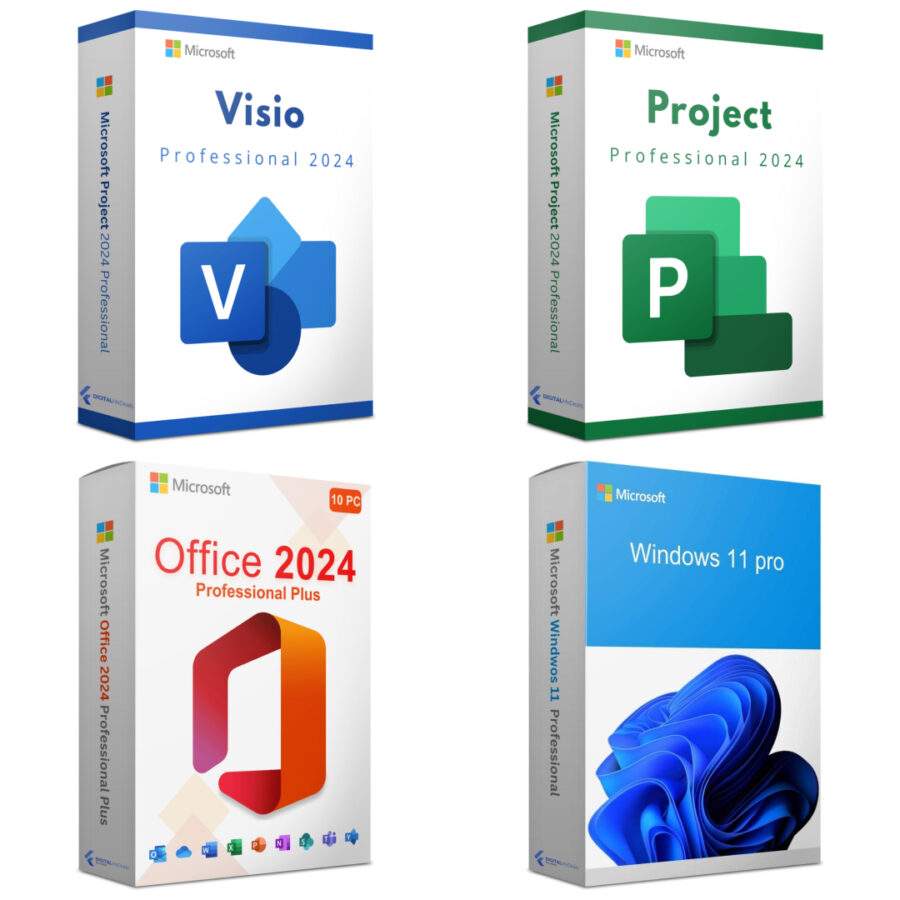 Microsoft Windows 11 Pro + Office 2024 Professional Plus + Visio 2024 Pro + Project 2024 Pro – Licenze a vita (1 PC)